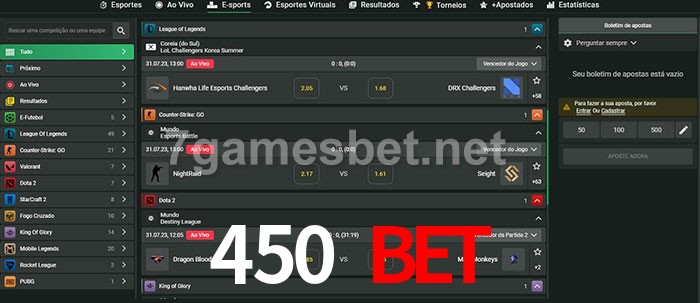 A aposta 450 bet oferece aos jogadores a experiência mais conveniente de apostas em eSports!